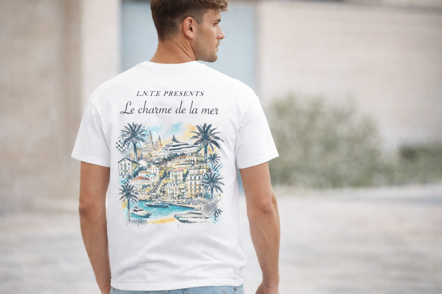 Mit dem LEONITE T-Shirt holst du dir das Gefühl der Côte d’Azur direkt in deinen Look. Die cleane Vorderseite mit edlem Schriftzug trifft auf eine kunstvolle Rückseite, inspiriert von Monaco, Nizza und Saint-Tropez – mit mediterranen Farben, Palmen, Yachten und dem entspannten Luxus der französischen Riviera.